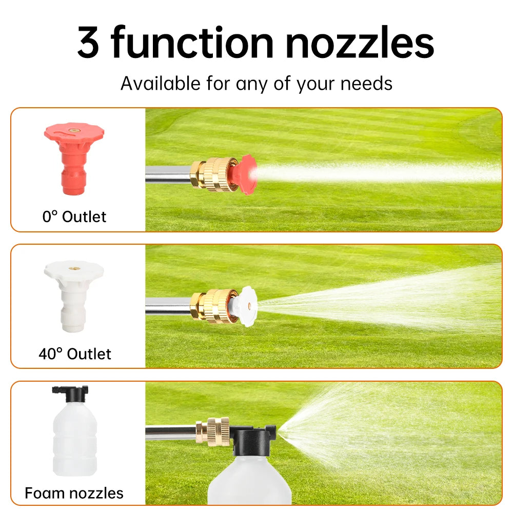 Excelente para limpiar mi terraza, paredes y autos. Las boquillas intercambiables permiten ajustar el chorro según lo que necesites.