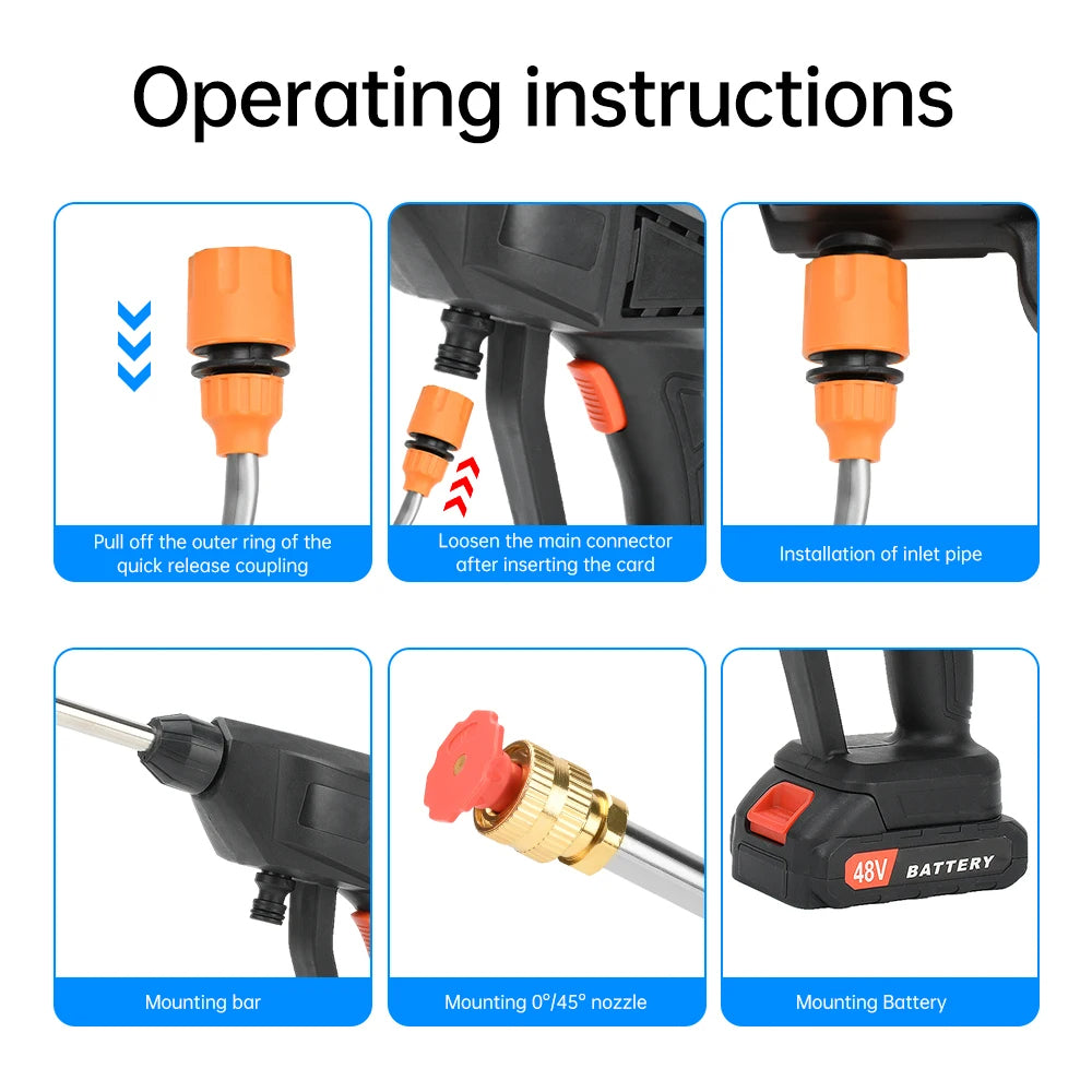 La batería de 6000 mAh permite entre 20 y 30 minutos de uso continuo, suficiente para lavar un coche completo o realizar varias tareas domésticas.